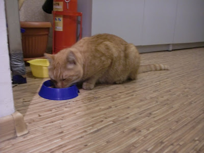 食事中。ちなみにオス猫だそうです。名前聞いたのに、忘れてしまった。